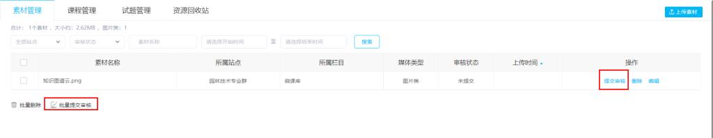 系统显示添加成功,点击“提交审核”按钮,可提交到对应的栏目负责人下面资源库总负责人下面进行审核。