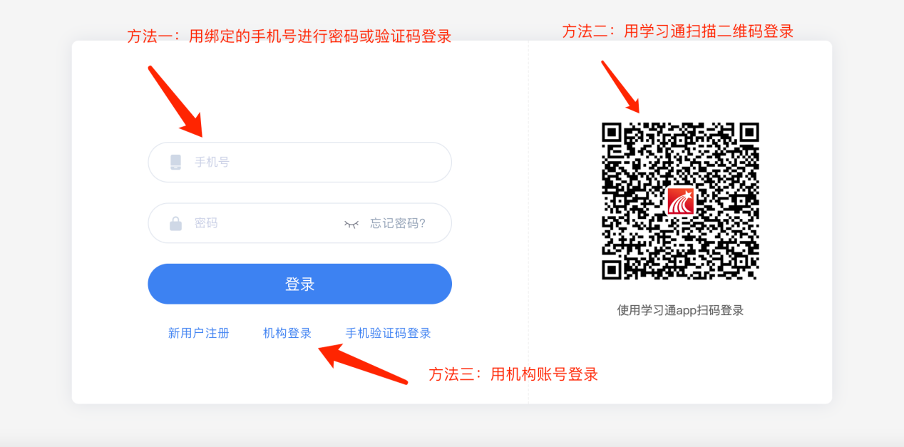 浏览器输入资源库网址,老师点击右上角的【登录】,进入登录界面,选择以下方式,选择登录方式。