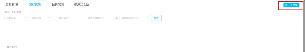 在资源管理中心选择“课程管理”,点击右上方“上传课程”按钮;