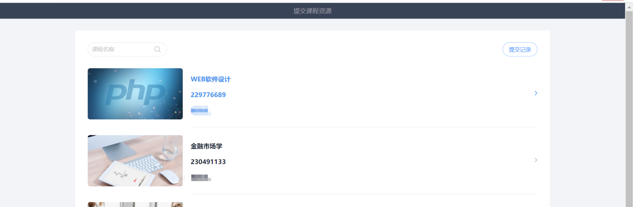 点击“提交记录”,即可查看已提交的课程资料及其审核状态;